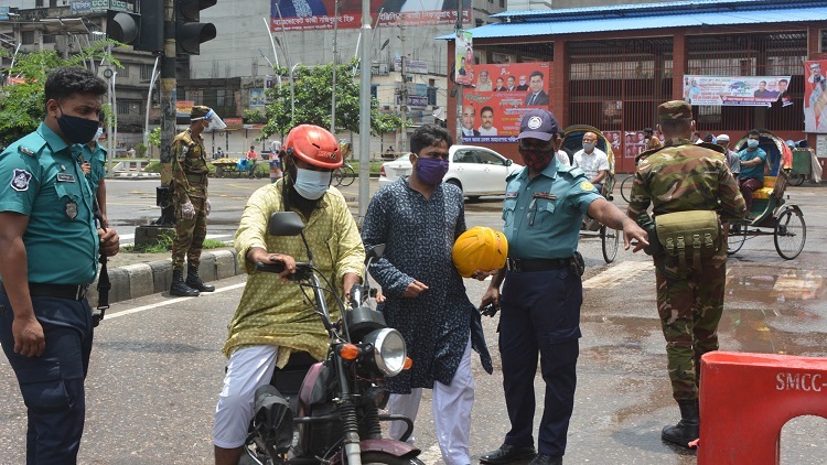 লকডাউন কার্যকরে রাজধানীর বিভিন্ন এলাকায় পুলিশের টহল অব্যাহত আছে। বসানো হয়েছে চেকপোস্ট। এর পাশাপাশি চলছে ভ্রাম্যমাণ আদালতের অভিযান।