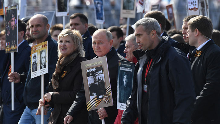 নিজের বাবার ছবি হাতে নিয়ে হাঁটলেন পুতিন