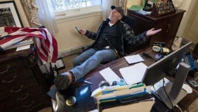 জানুয়ারি ১০, ২০২১ক্যাপিটল হিলে স্পিকারের টেবিলে পা তোলা সেই ব্যক্তি গ্রেপ্তার