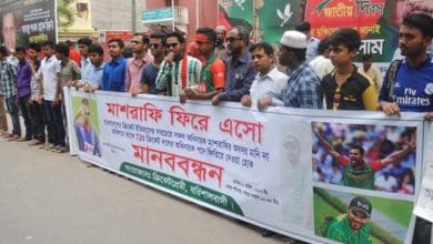 ডিসেম্বর ২৬, ২০২০মাশরাফিকে দলে ফেরানোর দাবিতে মানববন্ধন