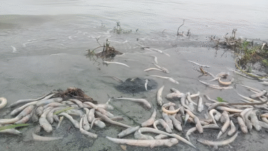 মেঘনায় ঝাঁকে ঝাঁকে ভেসে উঠছে মরা মাছ ও জলজ প্রাণী