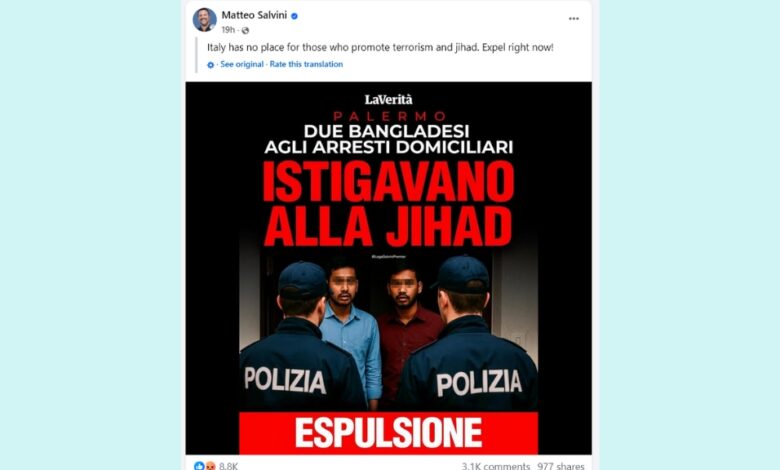 ইতালিতে ‘জিহাদি উসকানির’ অভিযোগে দুই বাংলাদেশি যুবক আটক