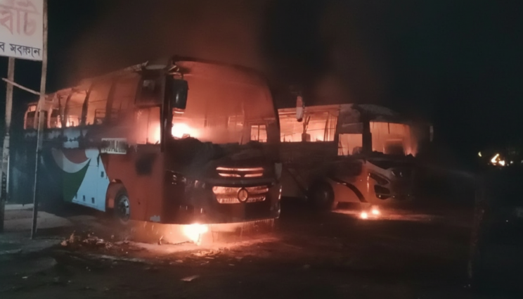 ঝিনাইদহে টার্মিনালে দাঁড়িয়ে থাকা ৩টি বাসে আগুন